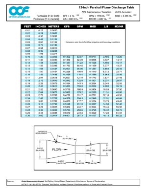 The free flow discharge table for the 12-inch Parshall is available for download.