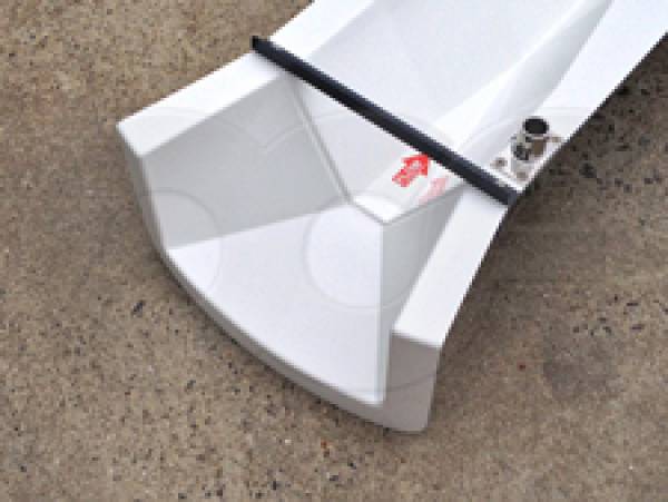 One way the Parshall flumes can be adapted to be used in existing manholes is through the use of staged (or curved) end adapters. Here the end adapter is curved to fit flush up against the manhole wall. This eliminates the need to form transitions into / out of the flume and also shortens the flume so that it will fit in the manhole.