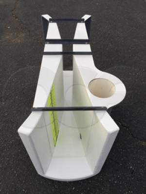 The staged end adapters mentioned above are specially curved end connection that allow the Parshall flume to be slid into place in a manhole and which eliminate there need to form a transition into / out of the flume.