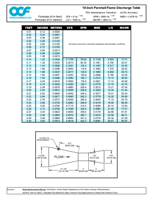 The free flow discharge table for the 18-inch Parshall is available for download.