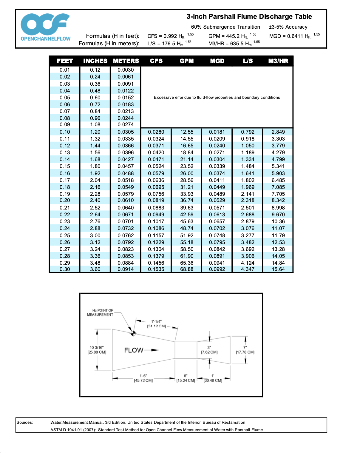 The free flow discharge table for the 3-inch Parshall is available for download.