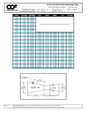 The free flow discharge table for the 6-inch Parshall is available for download.