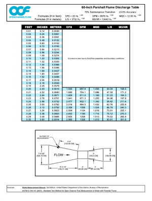 The free flow discharge table for the 60-inch Parshall is available for download.