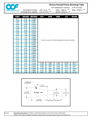 The free flow discharge table for the 96-inch Parshall is available for download.
