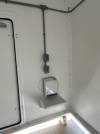 For heaters, as they are usually mounted lower in the shelter, towards the floor, they should be easily field replaceable. Milk-house style heaters on shelves are best here. Should the heater fail, it can be easily unplugged and replace, eliminating the need for an electrician to wire a new heater as would be the case with an on-wall, line powered heater. Heat lamps are also a low cost solution to maintain the temperature in smaller chlorination / dechlorination shelters.
